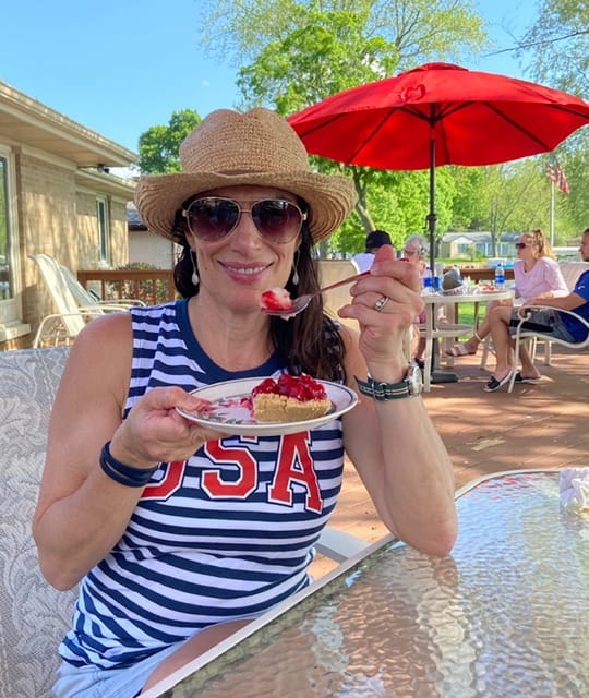 For as long as I can remember, this has been on our menu for a Fourth of July gathering at my parents’ house. As a little girl, I would help my Mom make this and our children have come to know this as Grandma Diane’s Special Dessert for Fourth of July on Lake Fenton. This recipe is something simple, something good” which are Marvelous Monday Musts. You can purchase a graham cracker crust already made from the grocery store, or, if you are “feelin’ it”, make your own-that wouldn’t be me. I like to use the Neufchâtel Cream cheese, rather than the full cream cheese, but I would not go so far as to use the fat free-I just don’t like the consistency of that one. Know that if you use the Neufchâtel that your pie will be a little (just a little) less firm than the full on cream cheese, but not much, and the flavor is very closely comparable. Pour your cherry pie filling on top and that’s all folks. Oh, on the cherry pie filling, Duncan Hines makes a newer one called Comstock Simply that doesn’t have the red usually put in canned fruits. Go for it!
