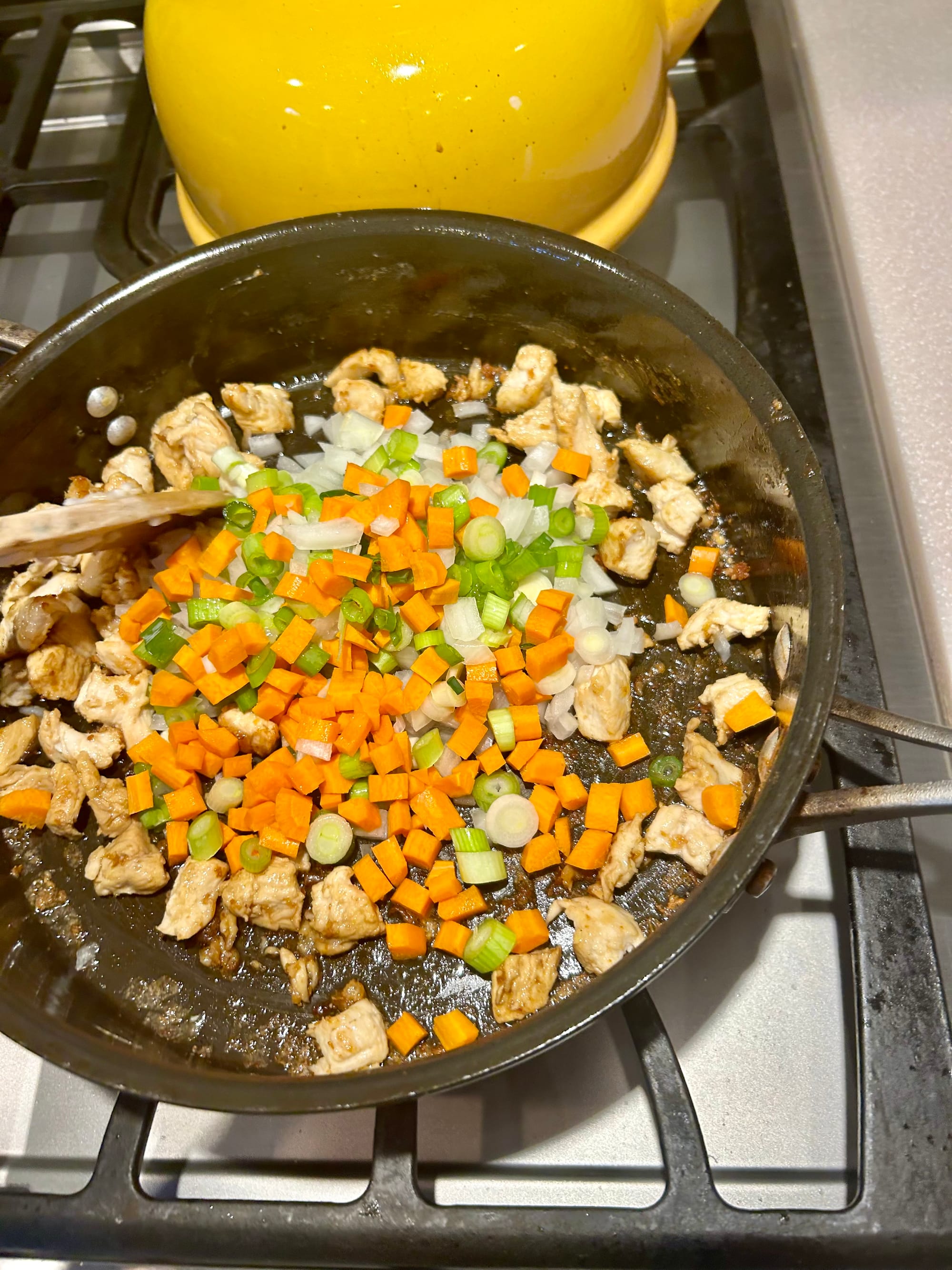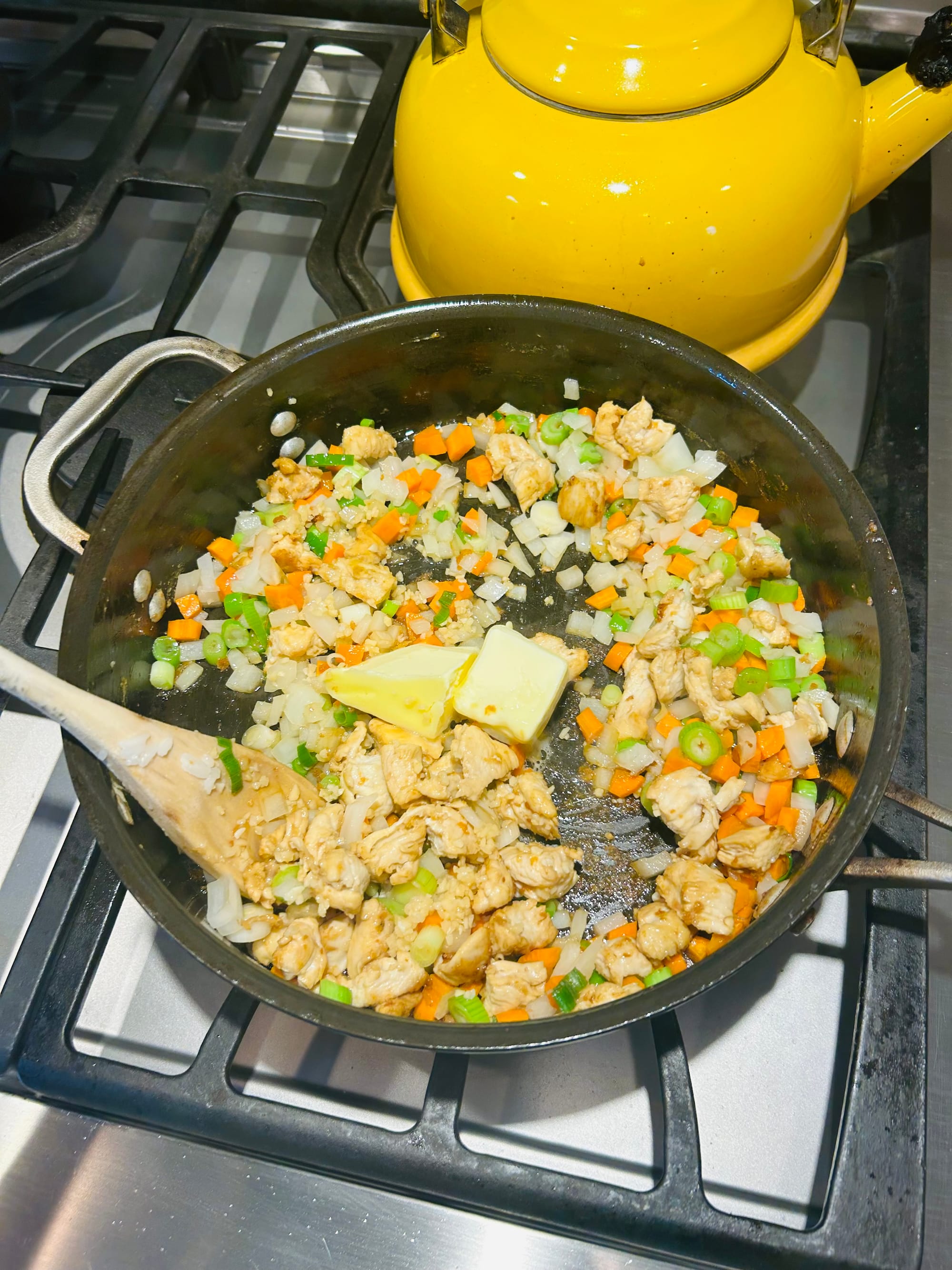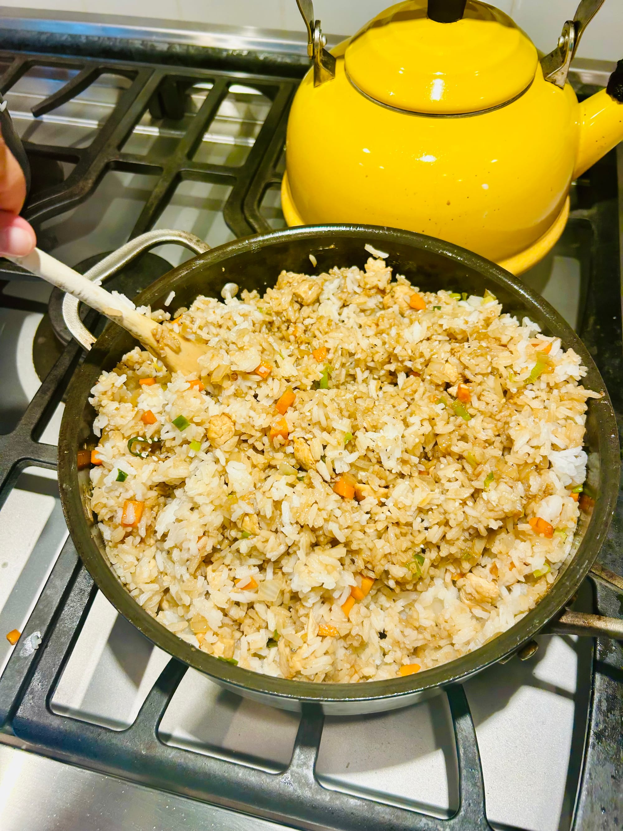 Here are your steps in photos…The only thing missing is chopsticks…No need for a trip to Benihana’s or PF Changs when you have a hankering for Chicken Fried Rice 🥣
