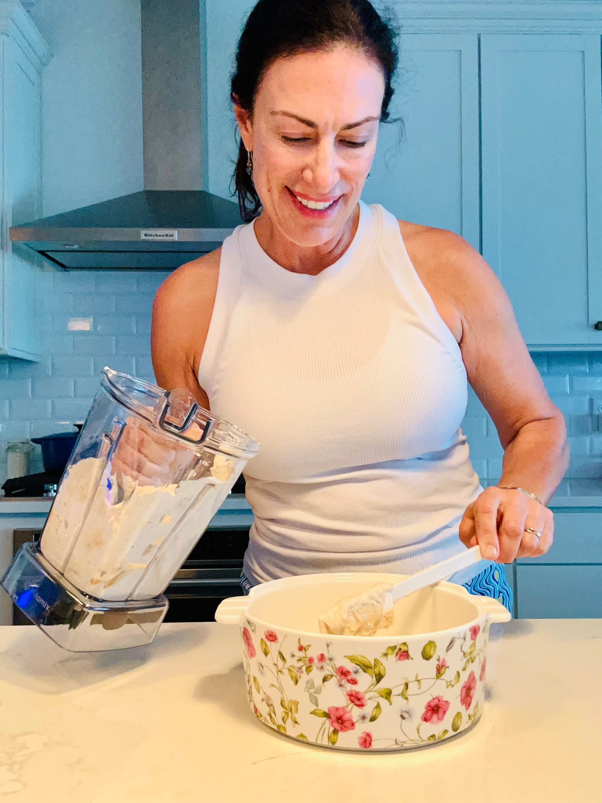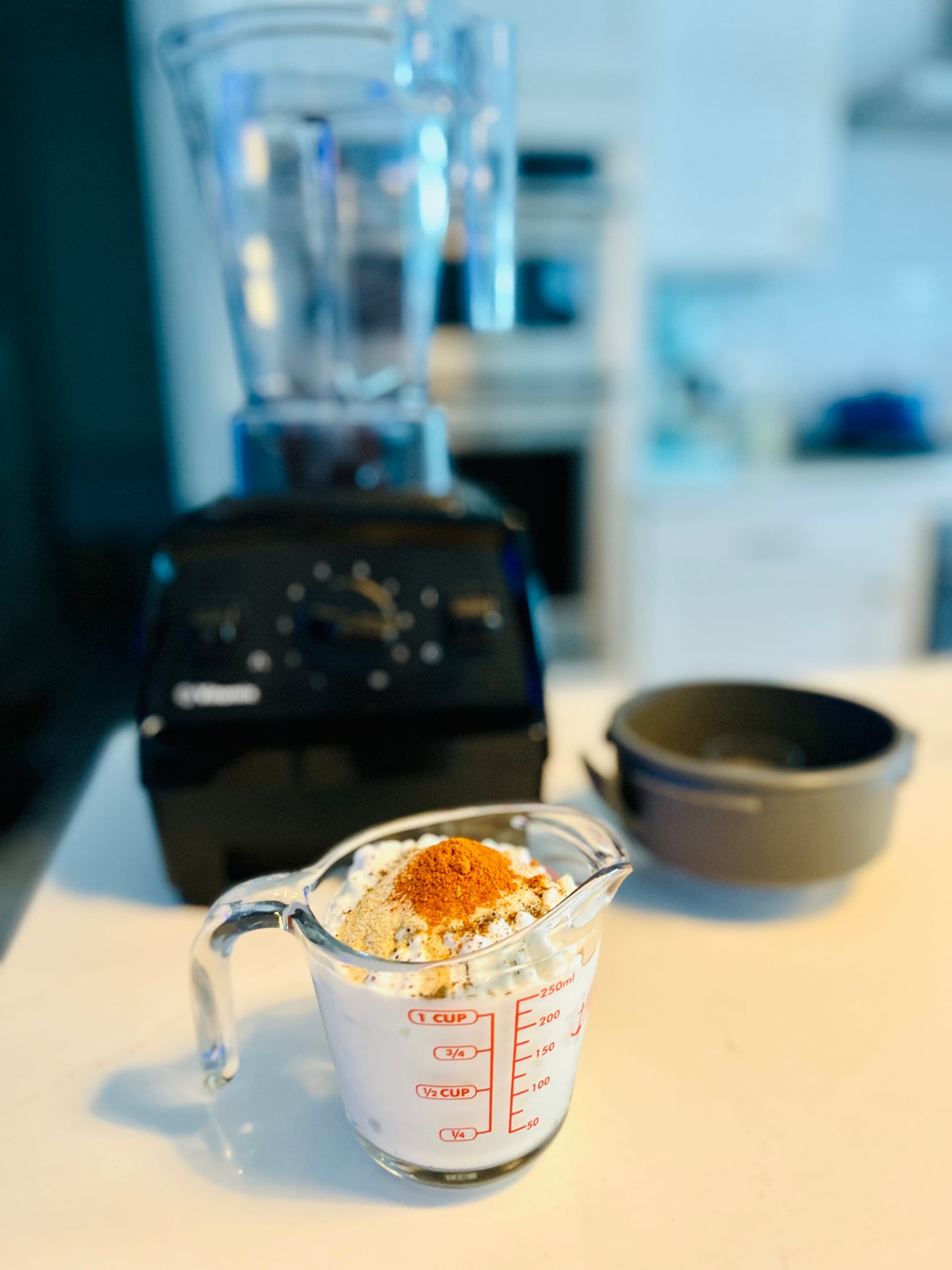 2. Place cottage cheese in a blender add everything except cheese, scallions and cilantro and blend.