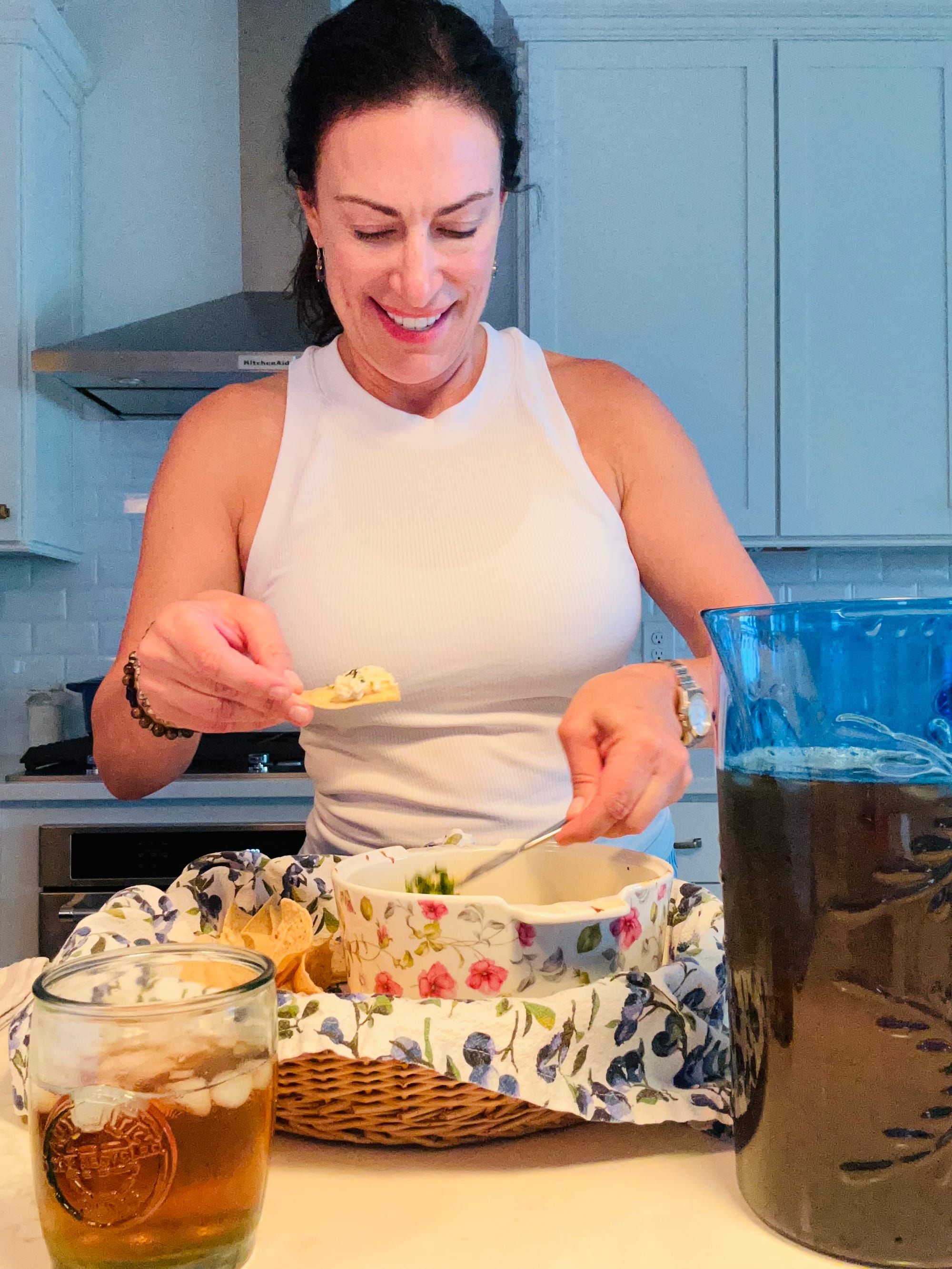 Eating healthy is easier than ever. There are so many ‘DUPES’ for or favorite snack foods available. Substituting Greek yogurt for sour cream, purred fruits for fats and oils in baked goods, agave for sugar and on and on. Well, here you go on this one to substitute for a Mexicali Dip. When you switch out the cottage cheese for sour cream or cream cheese, you’ll not only get less fat, but more protein. I would tell my kids protein is your brain food and if you workout, eating adequate protein can help build muscle. Sooooo, add these ingredients to your grocery list and get going. You now have a health snack for you or your people for your next gathering and someone asks you to bring an appetizer. Serve with your favorite corn chips, your favorite cold beverage, be it sweet tea or a spicy margarita and say hello to a …Great Day 🍽️
