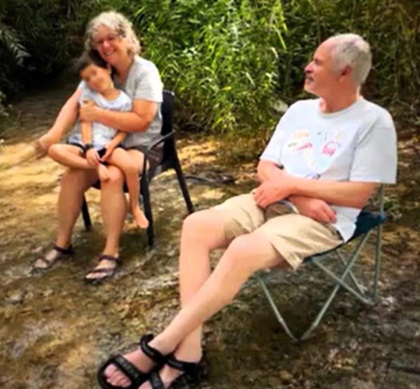 Left to Right-Keith and Aviva Siegel pre-captivity with one of their 5 grandchildren, middle photo Aviva hugging her husband when he was released and last photo right, Keith and Aviva at the White House this week meeting with Melania Trump.