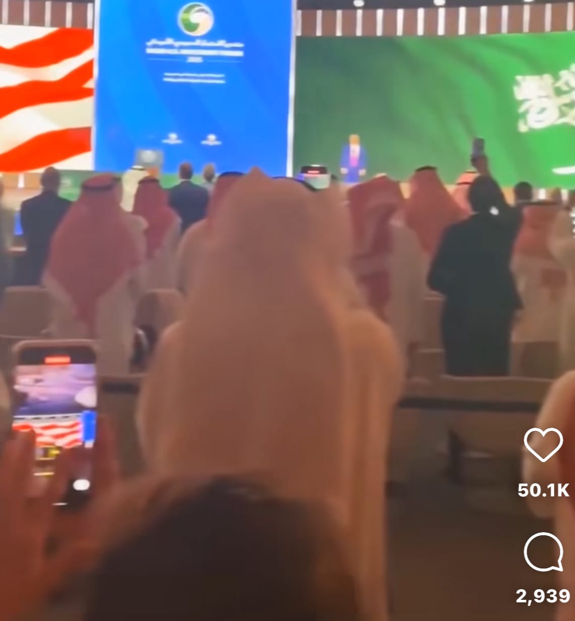 President Trump walking out onto the stage in Saudi Arabia to Lee Greenwood, “God Bless the USA.”