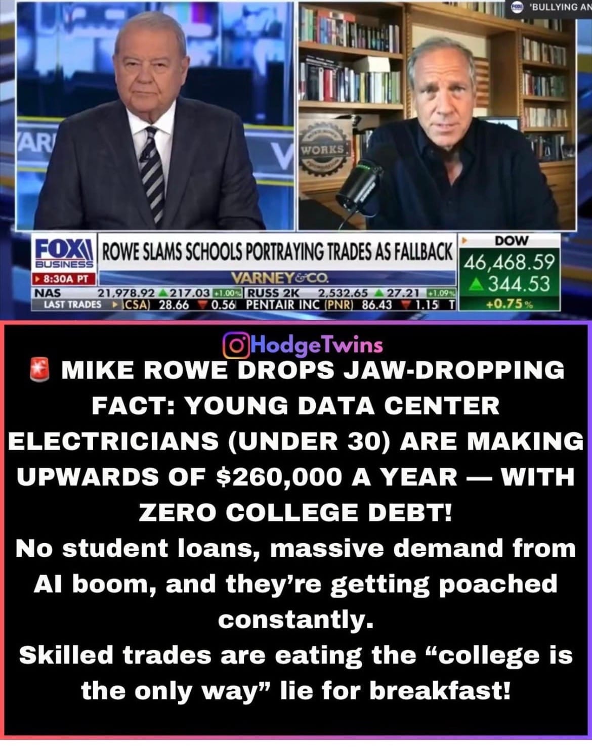 - https://www.foxbusiness.com/video/6391654209112 This is the link to the interview with Mike Rowe. He was describing electrician in Plano, Texas he spoke with, under age thirty.