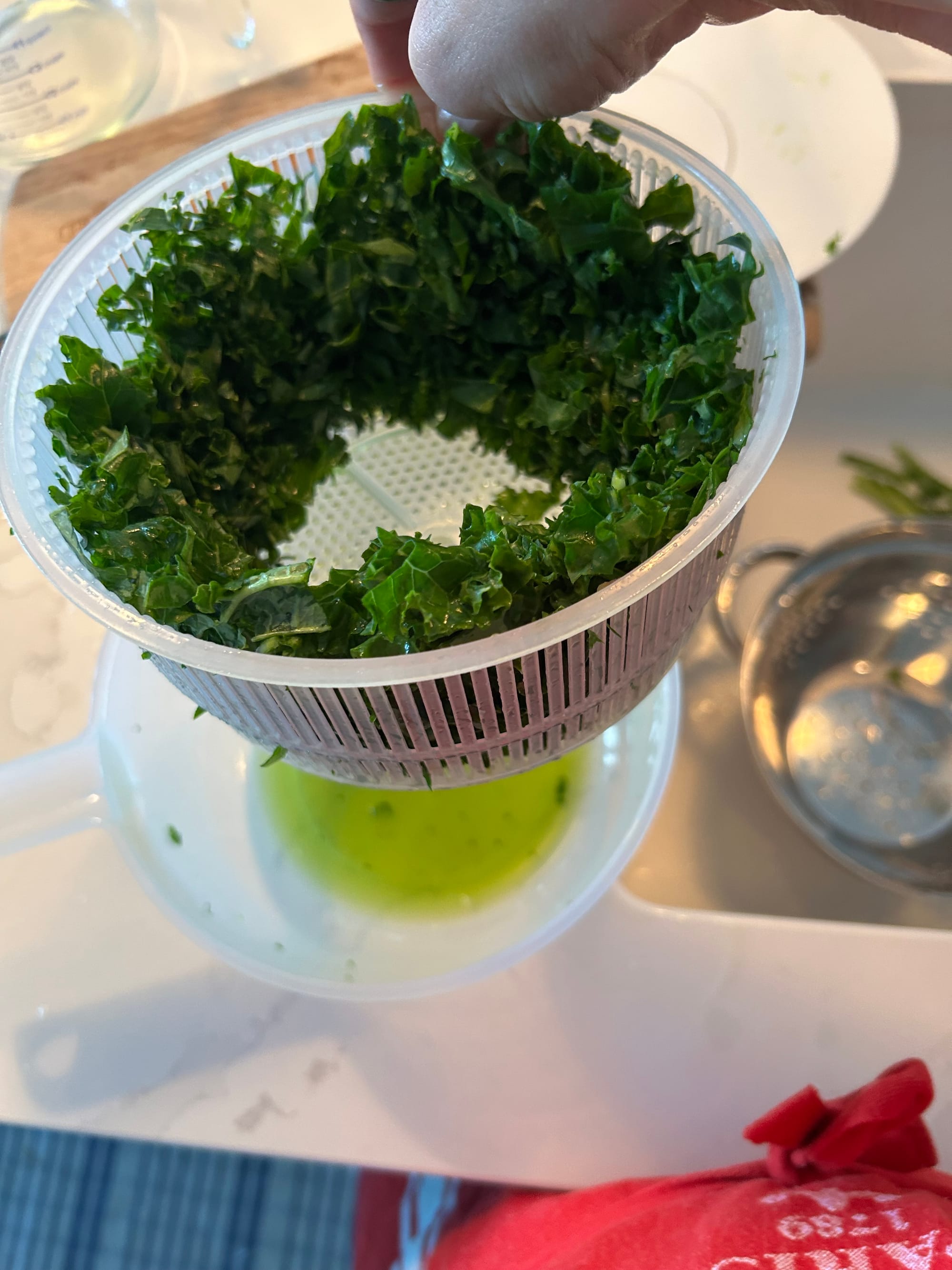 -I used a salad spinner to get additional water out of the kale after washing in a colander and chopping.