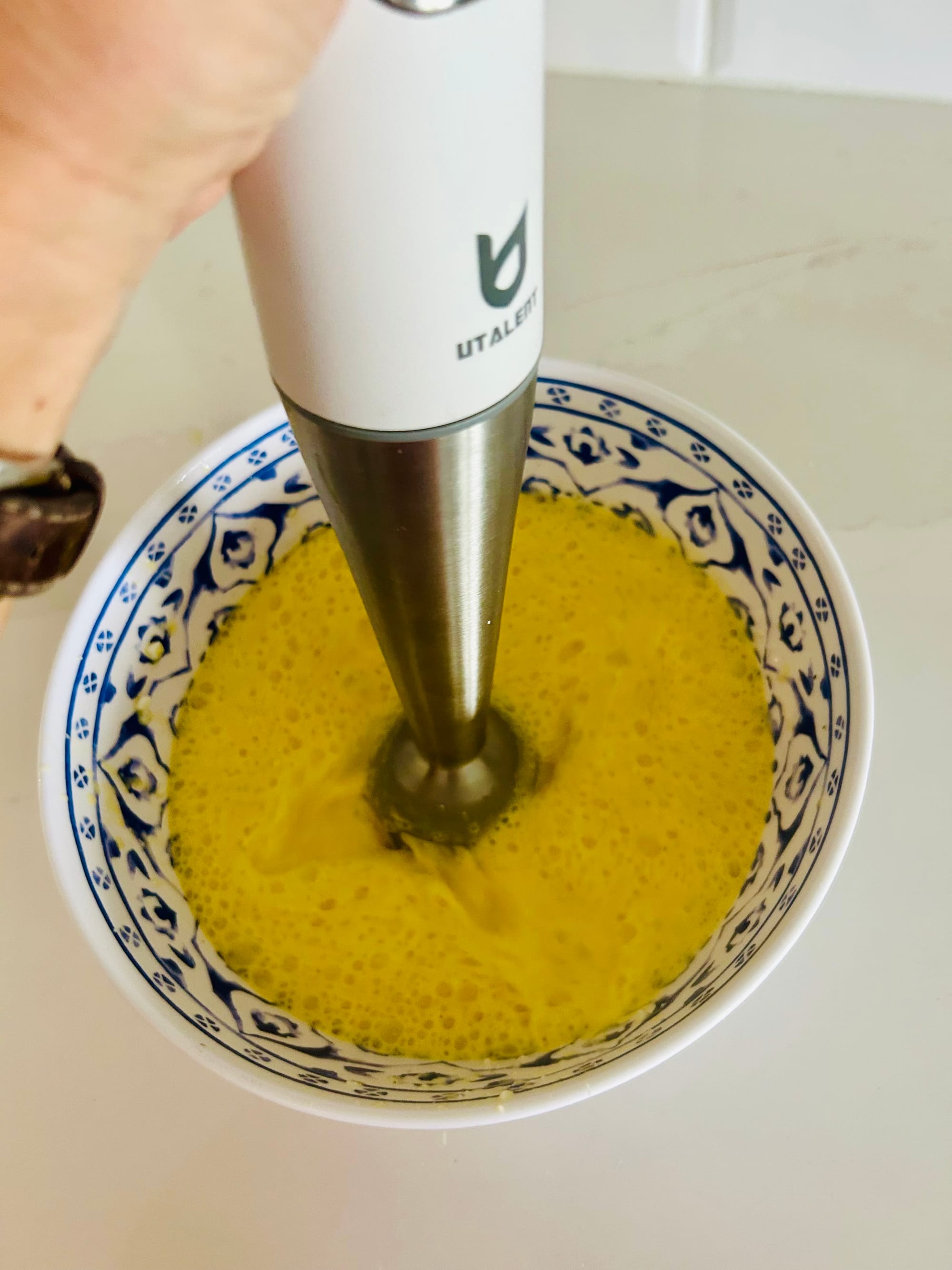 The cheese combo I used-what I had on hand-was shredded Swiss and shredded Parmesan-mostly Swiss. You seen the blending process.