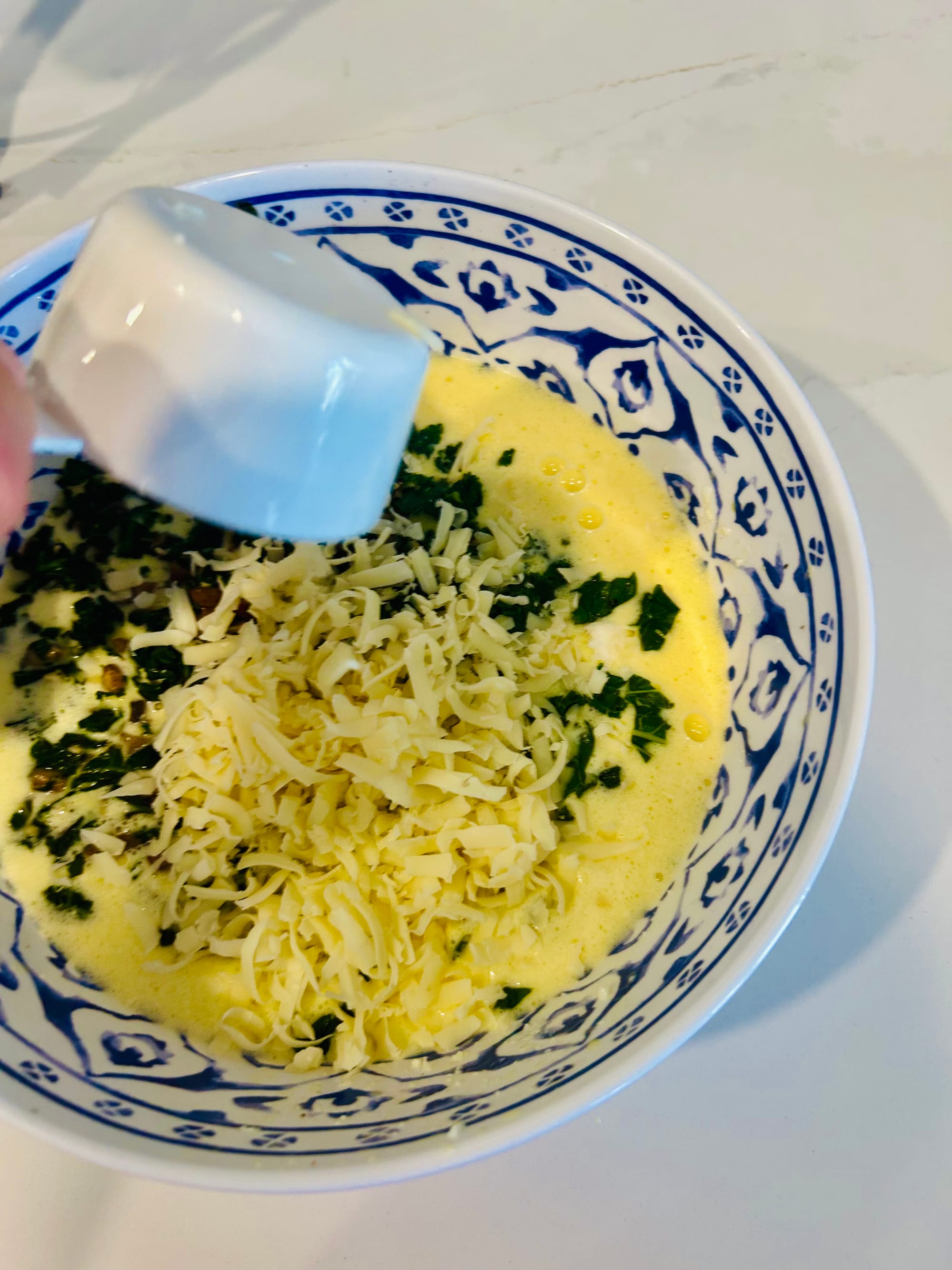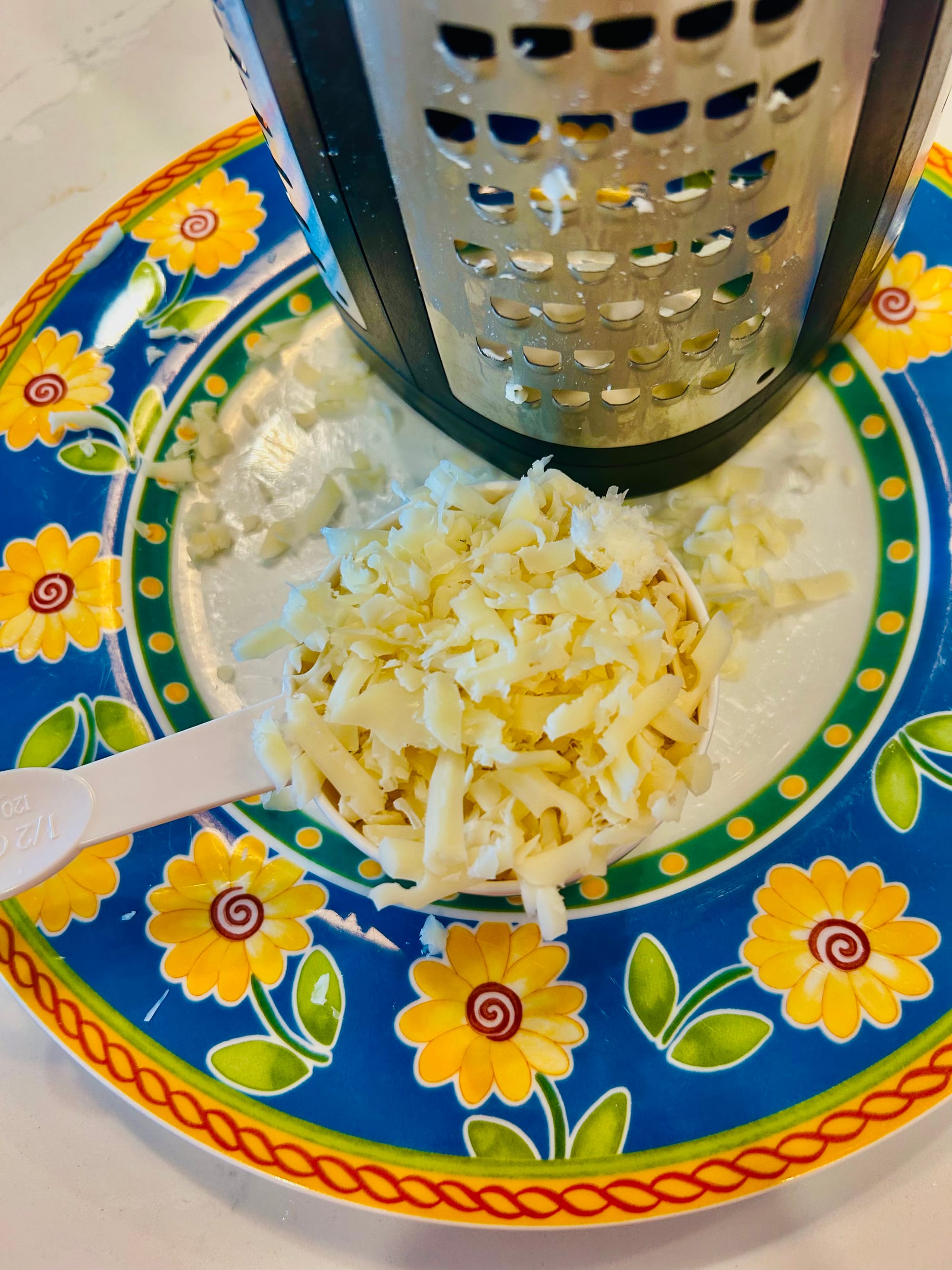 -Use this recipe as an outline and swap out cheeses. The combination I used for this recipe ended up being mostly shredded Swiss. After I shredded the 1/2 cup, I shredded a little extra Parmesan, tossed together, kept back about 2 Tablespoons of the cheese combo to sprinkle atop. Other cheeses could be feta or cheddar.