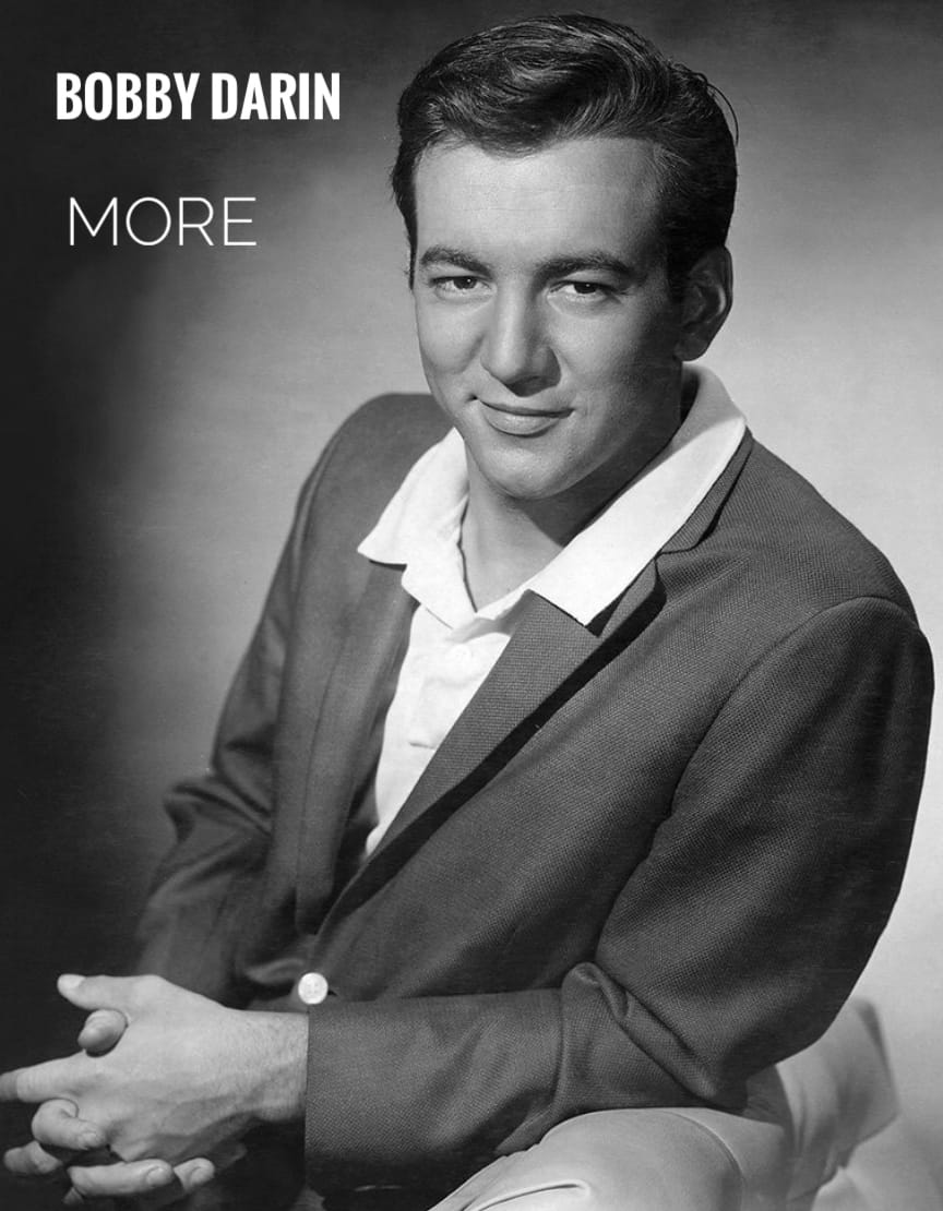 Earlier this week, I heard Bobby Darin’s hit song from the early sixties, MORE. The song was written by Ruiz Ortolani and Nino Oliverio, produced by Creed Taylor and the original song was the title song of the movie, Mondo Cane. Although others have recorded the song, from Katyna Ranieri to Andy Williams, to Frank Sinatra, Bobby Darin’s is most likely the most popular. Bobby Darin has a short, but very successful career. He died at the age of thirty-seven, due to complications following open heart surgery.