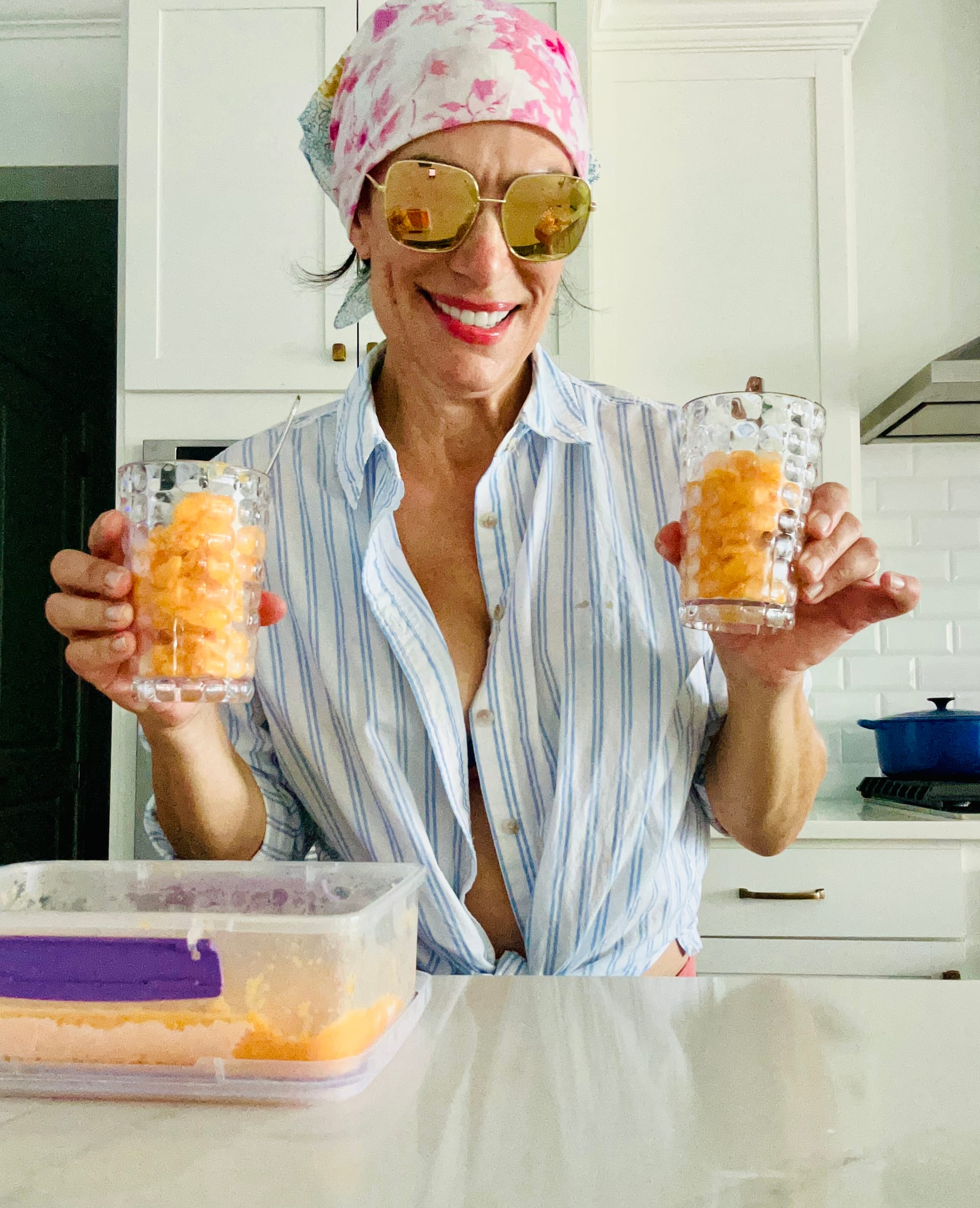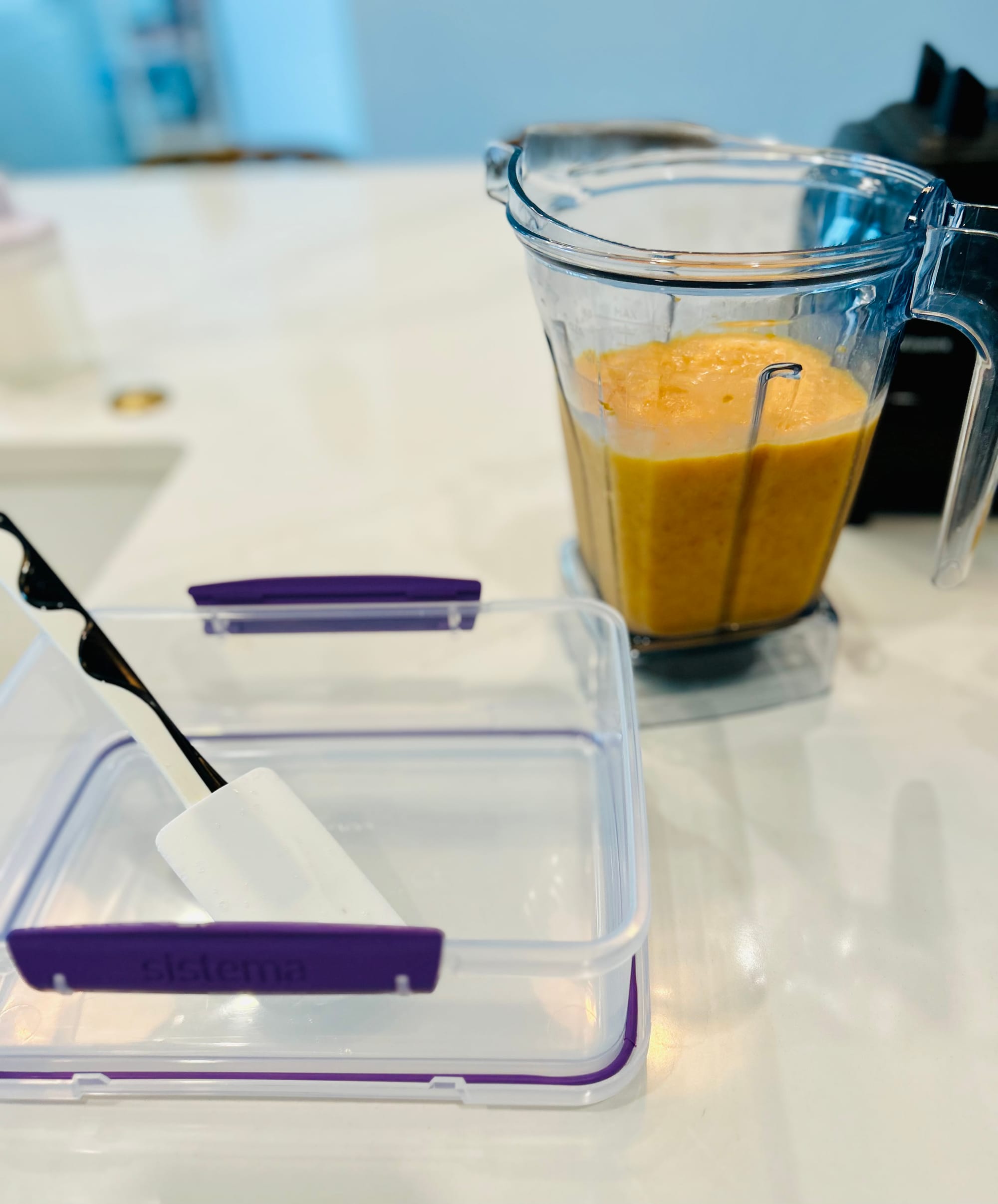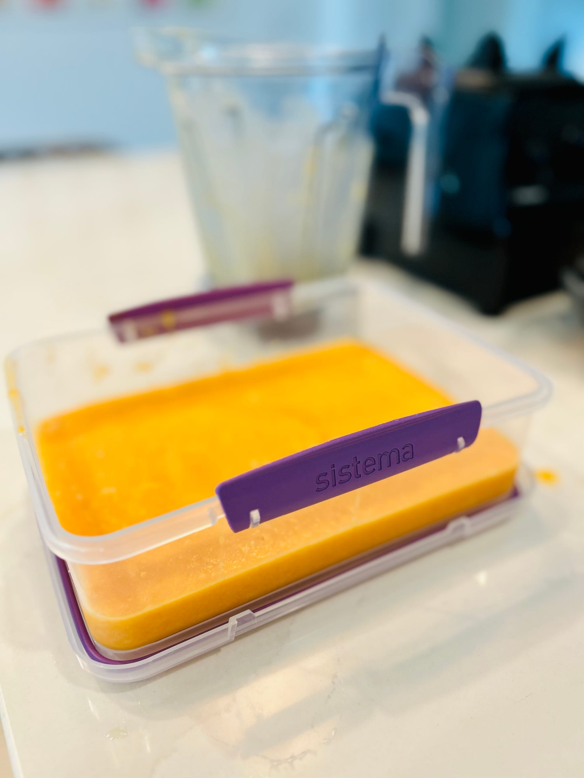 - Pour mixture into a container and freeze for about 2 hours. Remove container from freezer a few minutes prior to scooping into a bowl or cute glasses. Enjoy🍊