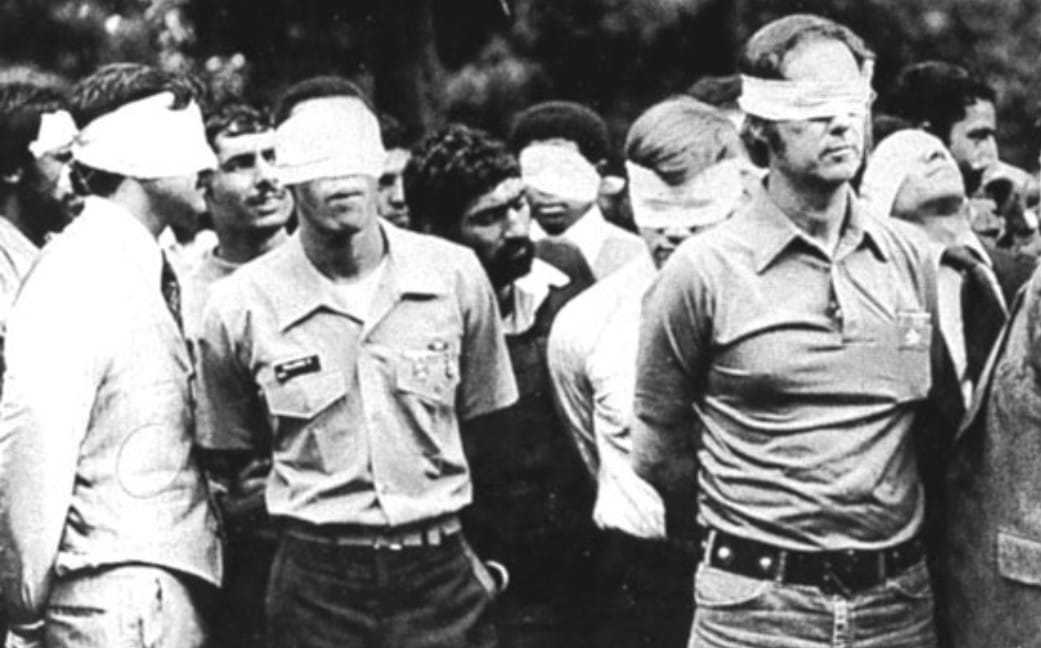 Scary scenes from the uprising, hostage taking and the Shah and his wife departing Iran.