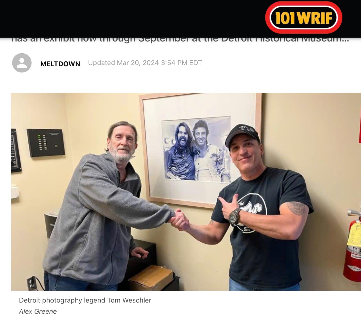 The famous photo and Tom Weschler in front of of the famous photo with a DJ from Detroit radio station, 101 WRIF.