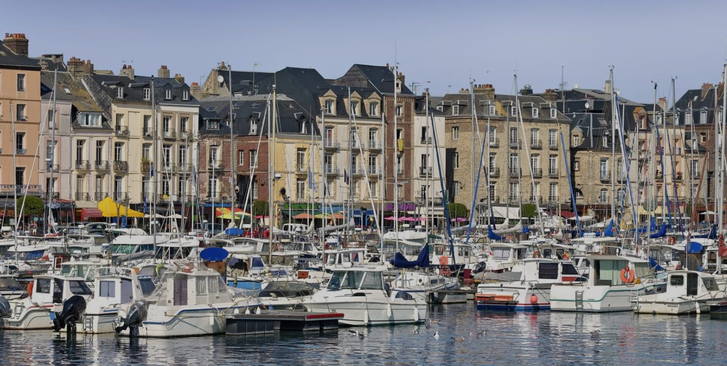 Ferries depart from several ports along the cost of England and France. Center photo, the pretty port of Dieppe’ France, far right, Dover, England.