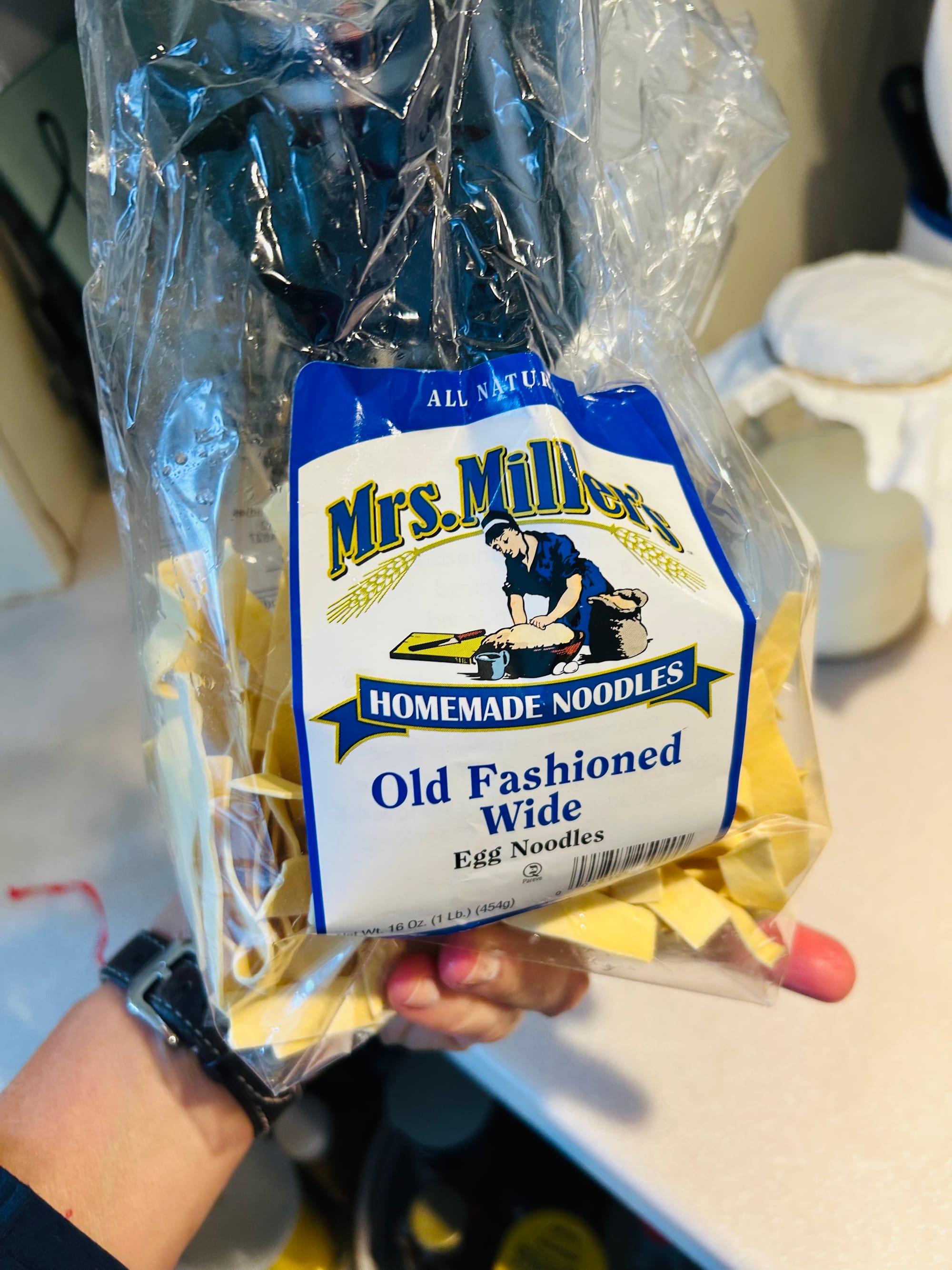-1 1/2 cup Amish/egg noodles (I like the wide one, use your preference) uncooked
