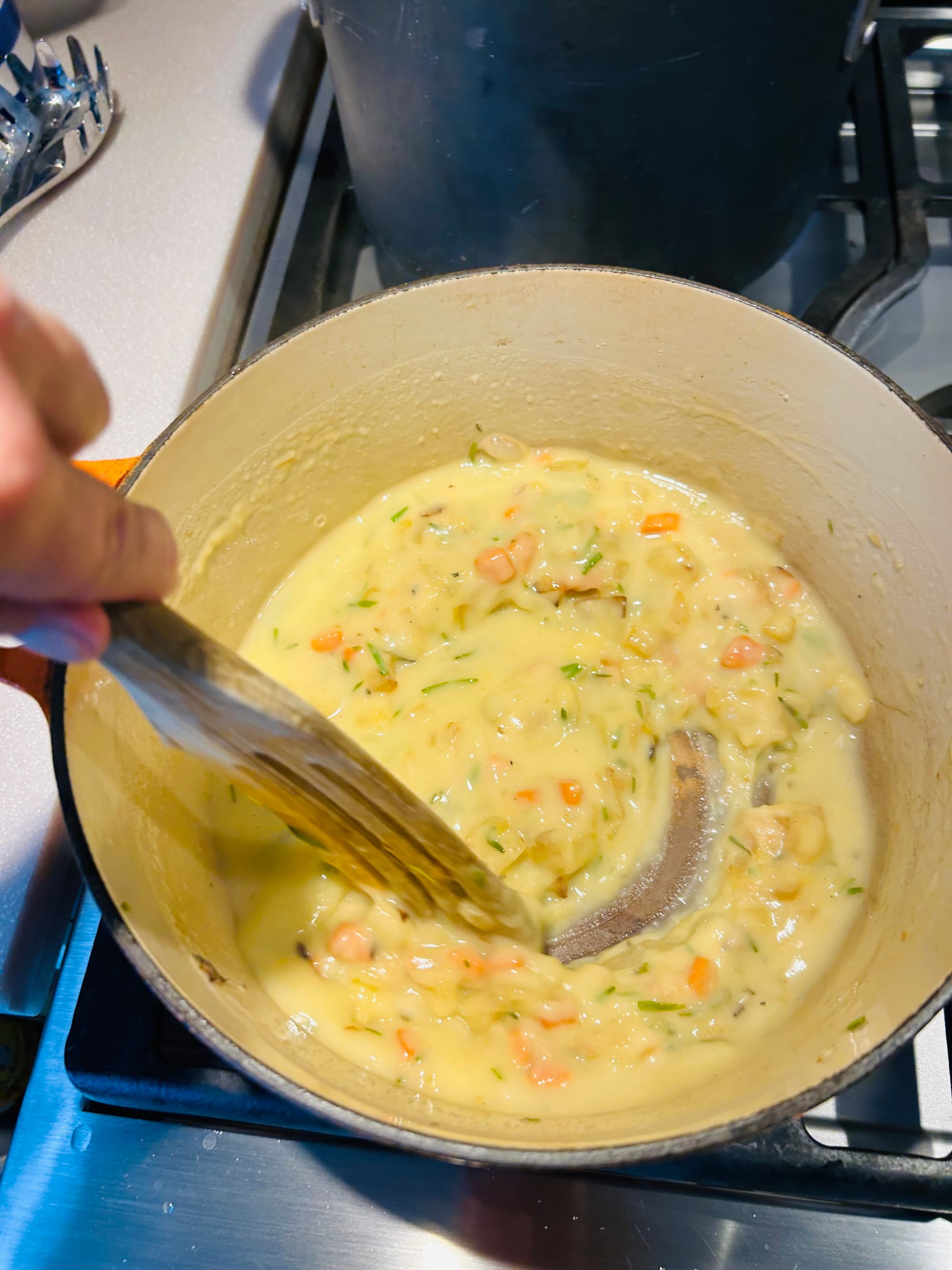 8. Decide if you need more milk, add salt and pepper to taste and serve, or let cool on stove, then refrigerate and reheat on the stove. You could warm portions in the microwave, i just like reheating on the stove. Enjoy!